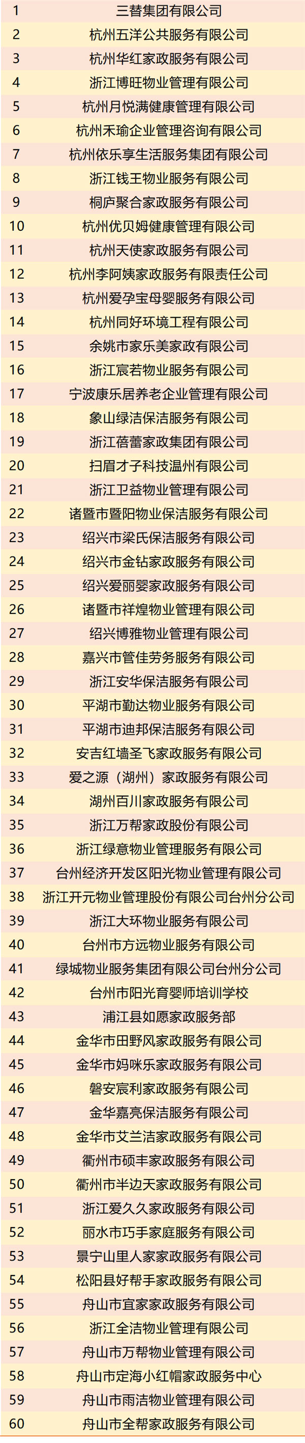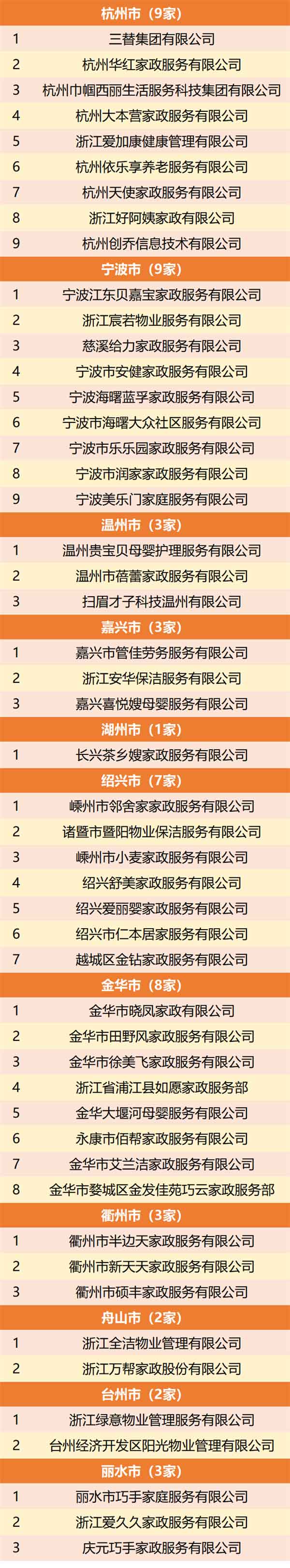 2020浙江省家庭服務行業(yè)示范企業(yè)