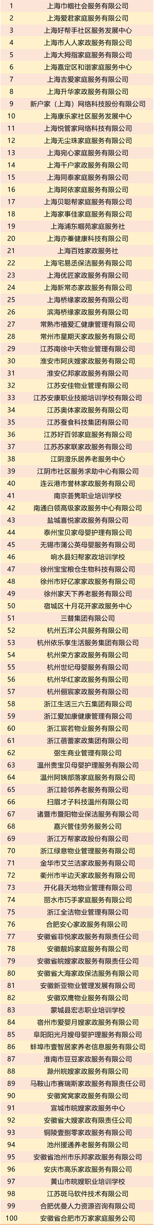 2020長三角家政服務百強企業(yè)